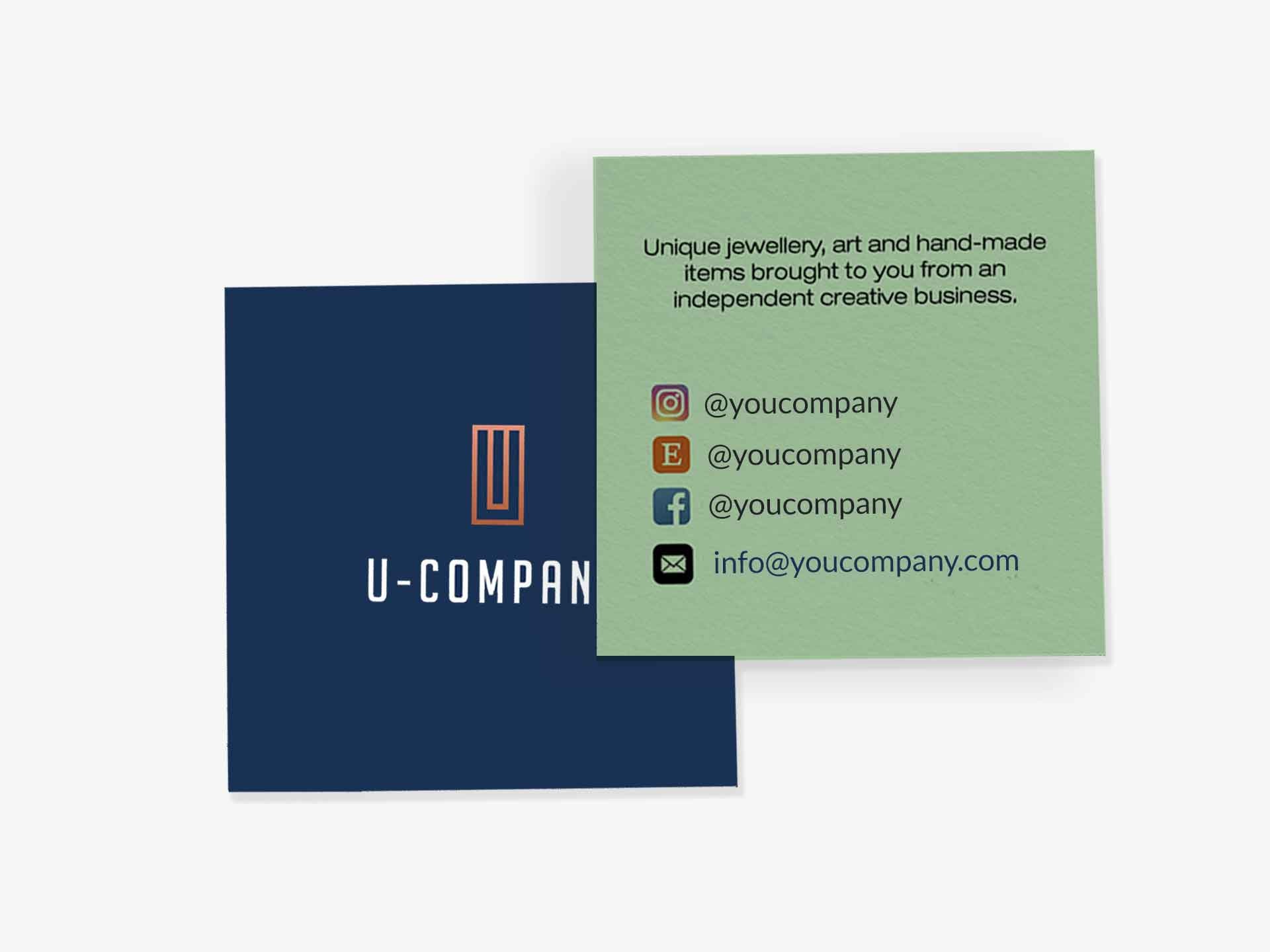 4 Paper Stock Options 2 Paper Quality Options Dimension shown on the design page includes bleed area (safety area), the final card size will be 6.35 x 6.35 cm Stretch your design up to the Bleed area to avoid white borders appearing around your card. Keep all your information within the safety area. Ideal for new…